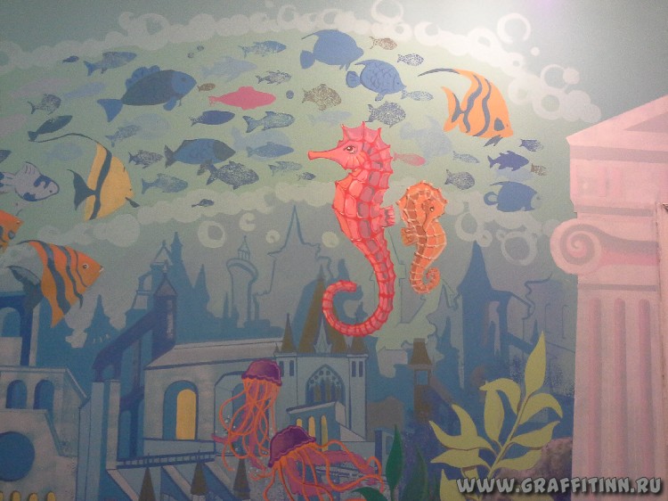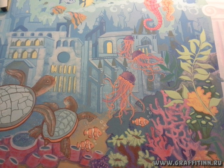 В школе-интернате для глухих детей (Нижний Новгород, Анкудиновское шоссе) коридор второго этажа превратился в сказочный подводный мир. Это чудесное превращение произошло благодаря творческой группе «Брокколи». Проект ГОРОД СКАЗКА выражает благодарность художникам: Светлане, Катерине, Артему и Константину. Ребята создавали свое живописное произведение в течении месяца. И результат их труда теперь будет радовать воспитанников школы-интерната для глухих детей.