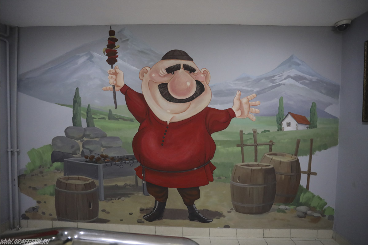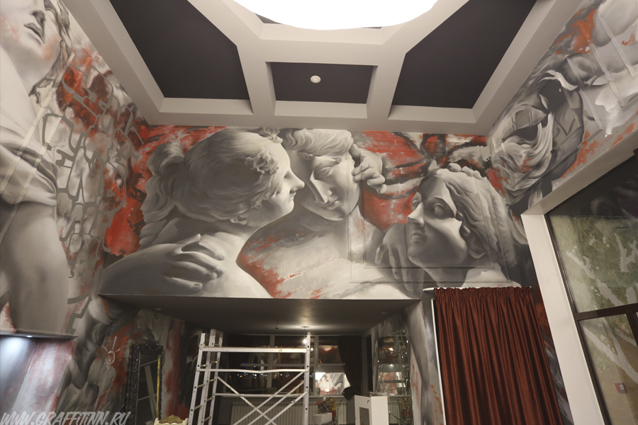аэрография на стенах в ресторане Строгов Нижний Новгород